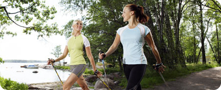 Le mouvement de la marche nordique se calque sur celui du mouvement naturel de la marche en ajoutant une poussée sur les bâtons ce qui vous permettra: